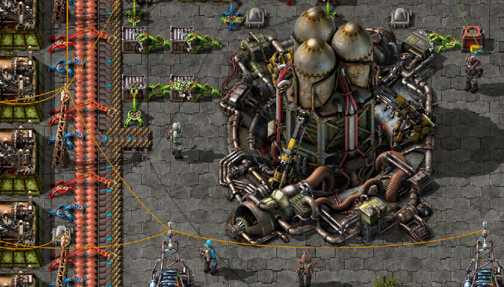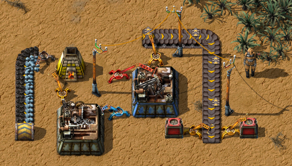 You want to have exactly 106 gears in your buffers? No problem, just make a circuit that switches off the production line once you have reached the limit. This is an advanced but powerful concept where you can really "program" your factory. With items such as programmable speakers, complex arithmetic processors, lamps and more. The sky is the limit with this Turing complete system.