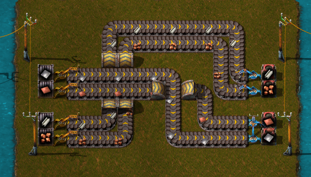 So many chests and such a small island. Can you connect the chests without your head spinning? In every level there are input chests (steel) and output chests (red). Your goal is to use transport belts to connect all the chests.